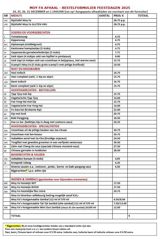 Afhalen feestdagen